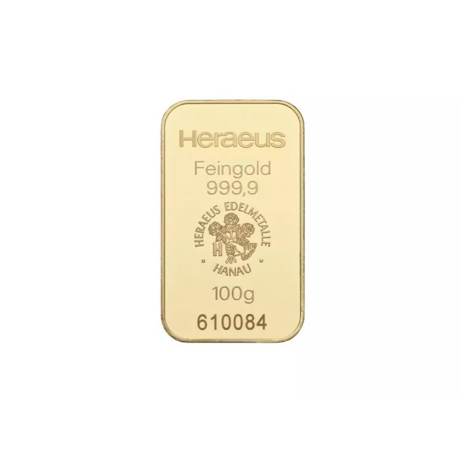 Each 100g Heraeus Minted Gold Bar contains 100 grams of fine 24 carat gold with a purity level of .9999.