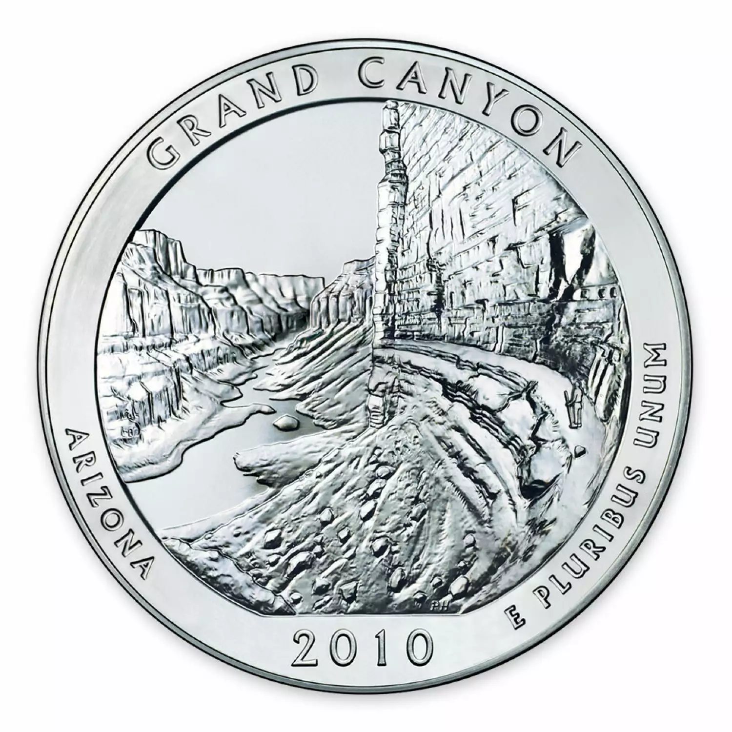 Since 2010, the US Mint released five silver America the Beautiful coins annually. The 5oz silver coins will be complete in 2021, each representing a historical monument or a treasured national park. These bullion coins were introduced following the success of the state quarter program.Grand Canyon National Park, located in northwestern Arizona, is the 15th site in the United States to have been named a national park. The park's central feature is the Grand Canyon, a gorge of the Colorado River, which is often considered one of the Wonders of the World.