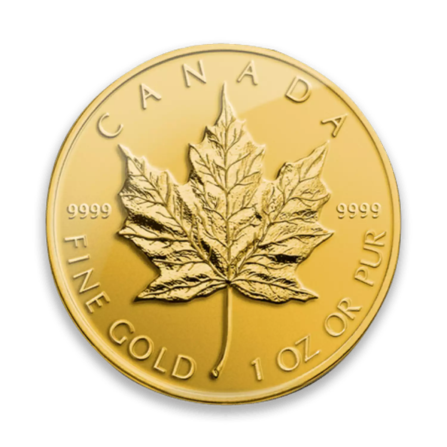 THE CANADIAN GOLD MAPLE LEAF COIN YOU RECEIVE WILL HAVE A DATE OF OUR CHOICE AND WILL UNLIKELY MATCH THAT OF THE IMAGE.