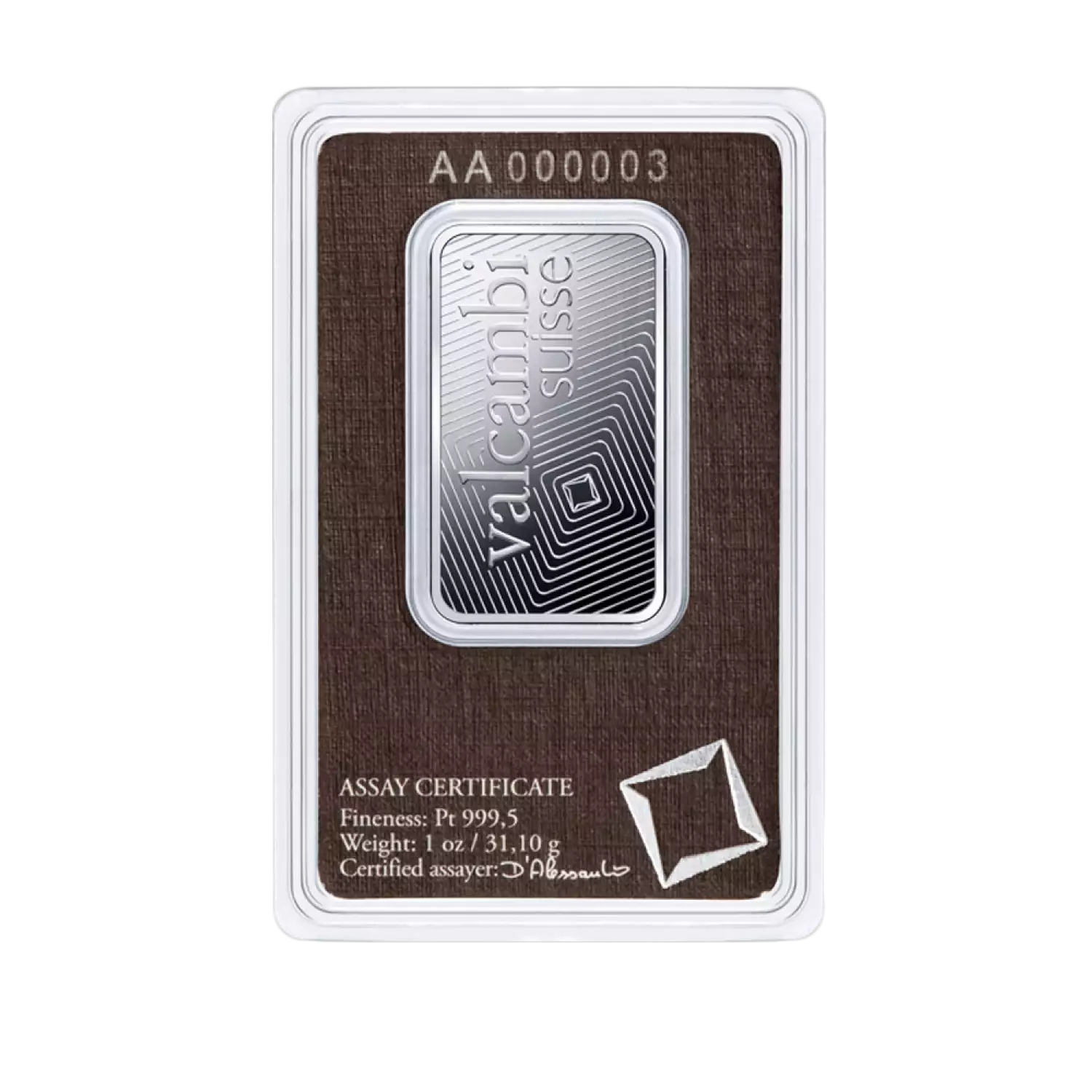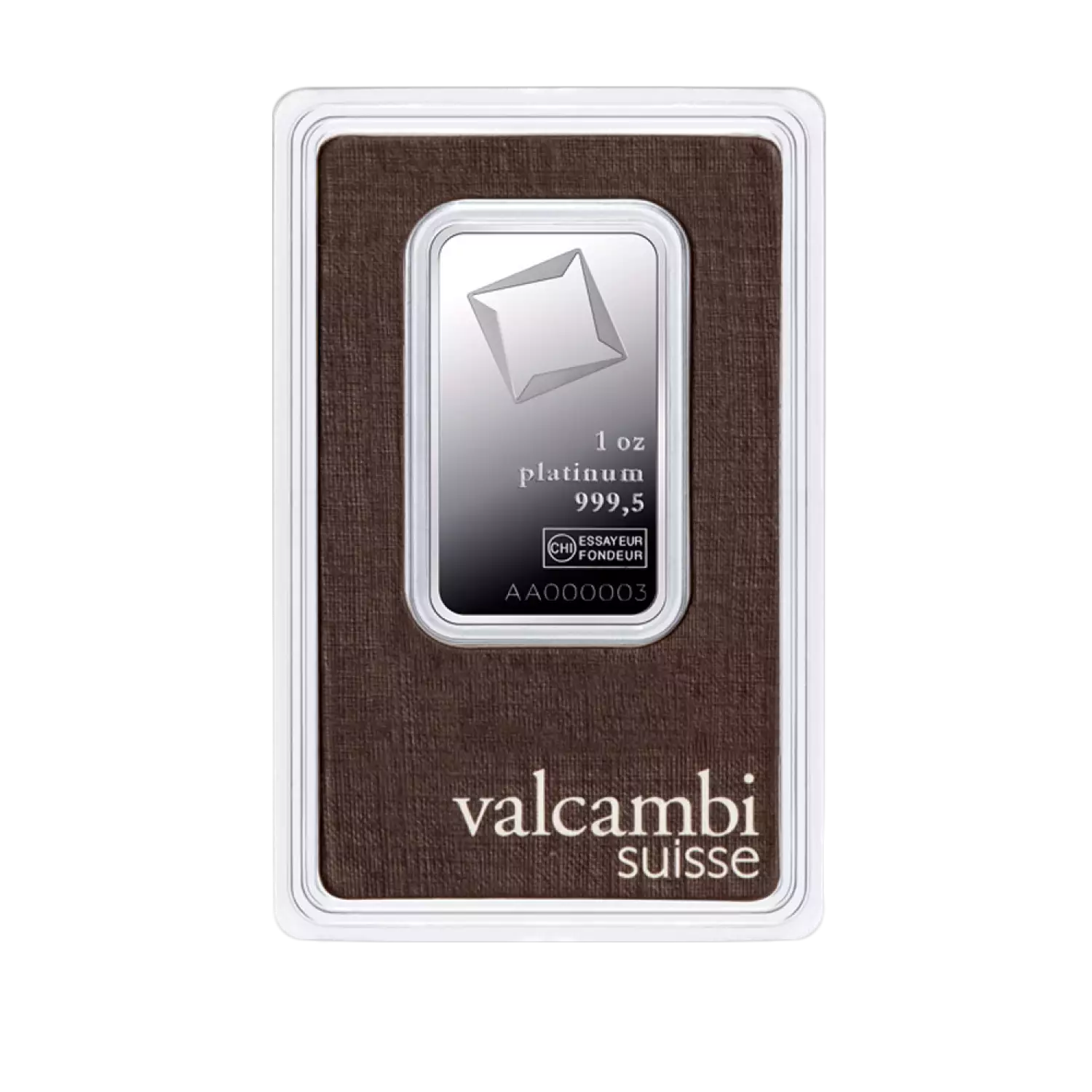 Want to buy a platinum bar from one of the genuine bullion dealers? Order the high-quality 1oz Valcambi Minted Platinum Bar online today from us! The platinum bar price is updated on our website every minute.