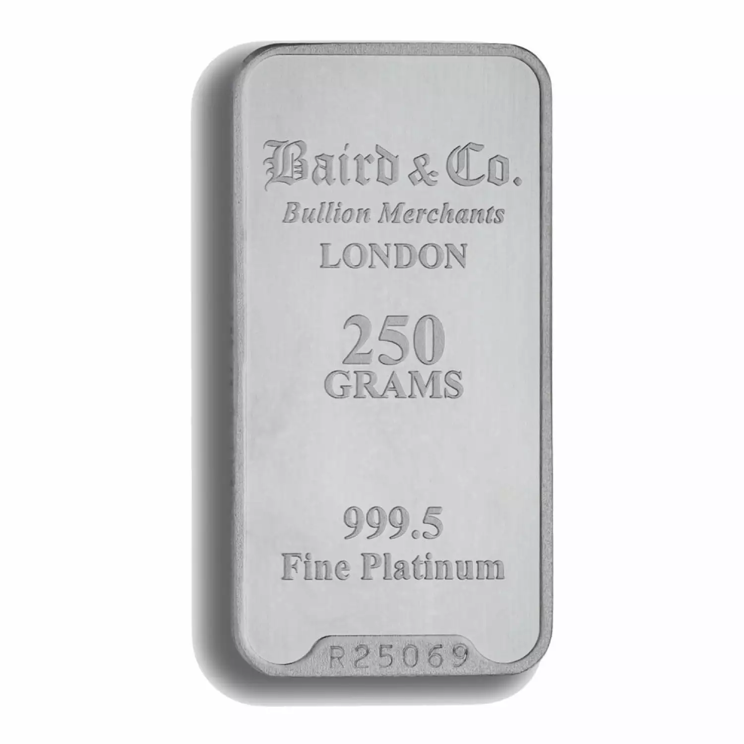Looking to order a platinum bar from one of the reputable bullion dealers? Buy the high-quality 250g Baird & Co Platinum Minted Bar online today from us! You can check and compare our reputation and platinum coins prices with other bullion dealers and see how we stand out from the other platinum dealers in the industry. The current platinum bar value is updated on our website every minute.