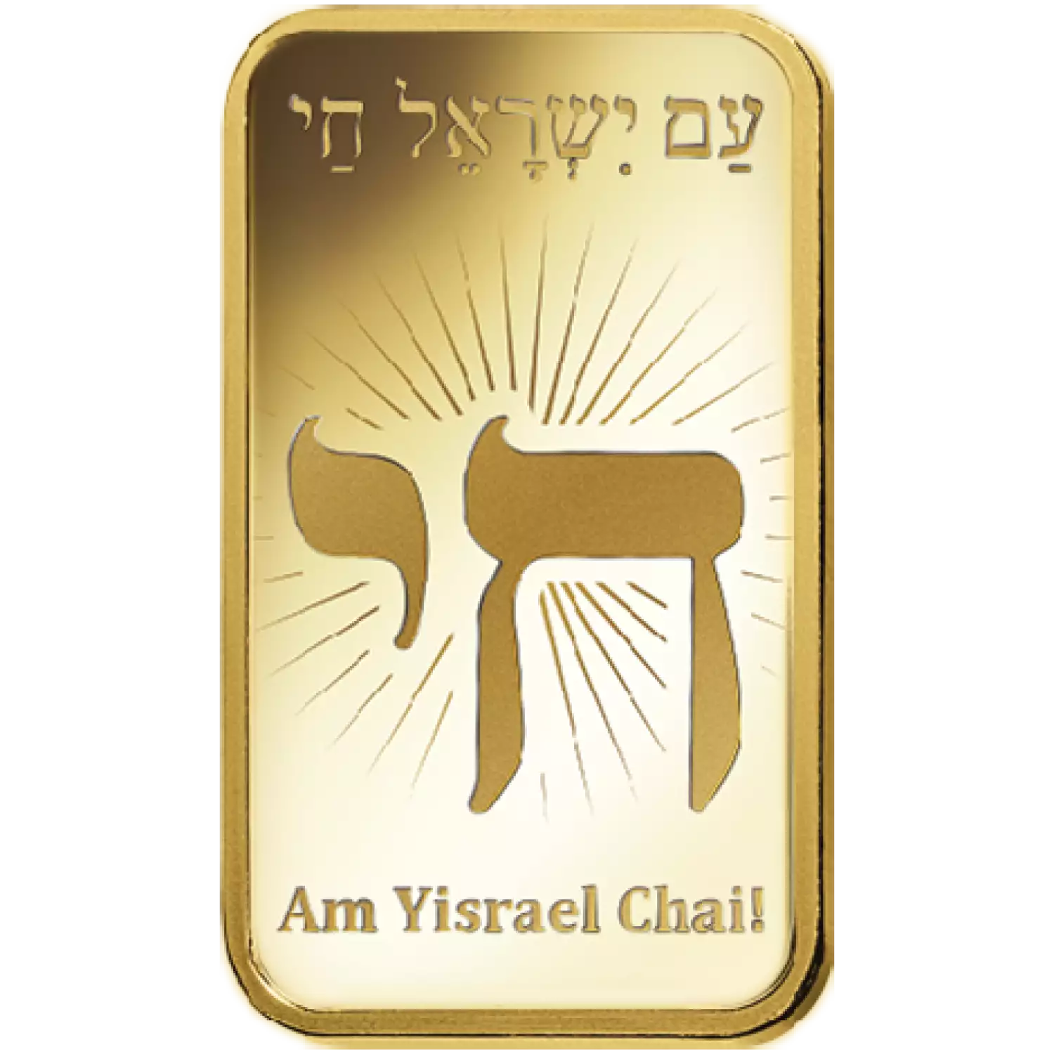 PAMP is the world-renowned producer of precious metals bars. The PAMP Gold Bars have been accepted as a great delivery by the Swiss National bank since 1986. The 5g PAMP Gold Bar - Am Yisrael Chai! is manufactured in Switzerland and is composed of 5 grams of 999.9% fine gold.