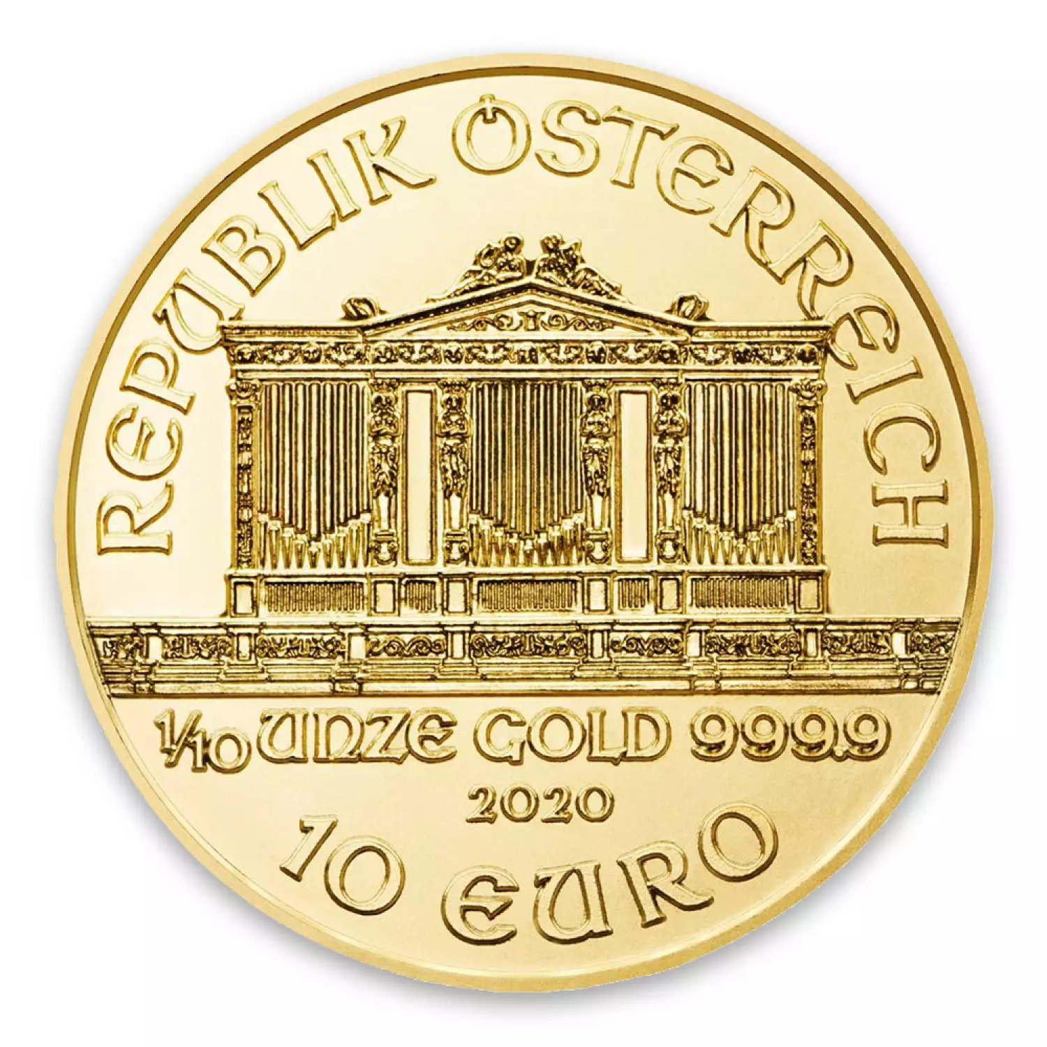 Thinking about buying gold coins from one of the reputable bullion dealers? Buy high-quality 2020 1/10 oz Austrian Gold Philharmonic online today! You can check the current gold coin price on our website.