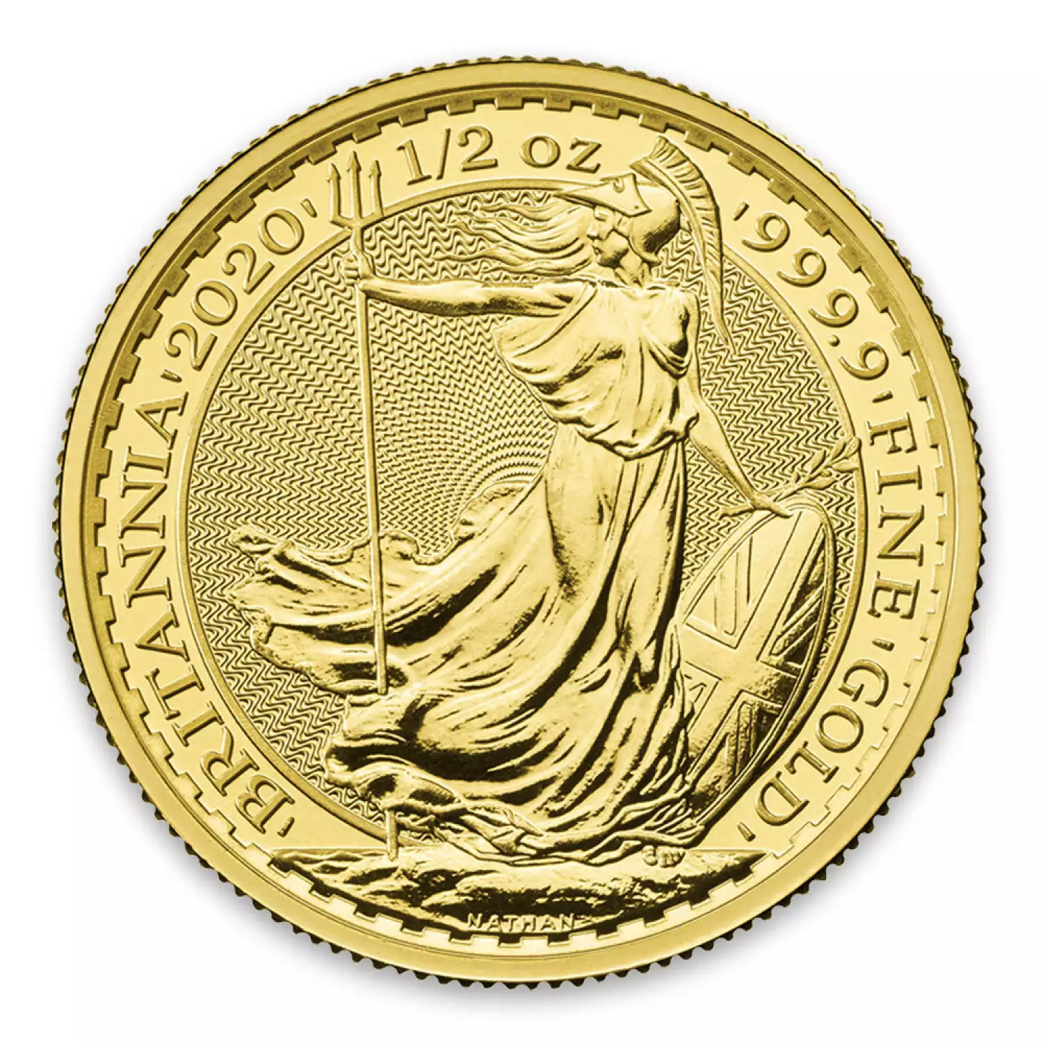 The British Gold Britannia continues to provide beauty and reliability. The 2020 1/2oz British Gold Britannia is one of the most popular investment coins in the world. Each 2020 1/2oz British Gold Britannia contains 0.5 troy ounce of .9999 fine gold. The reverse, designed by Philip Nathan has never changed since the first Britannia bullion coin in 1987. The Britannia has been a symbol through out the history and it’s first appeareance on the Roman coins is dating back over 2000 years ago.