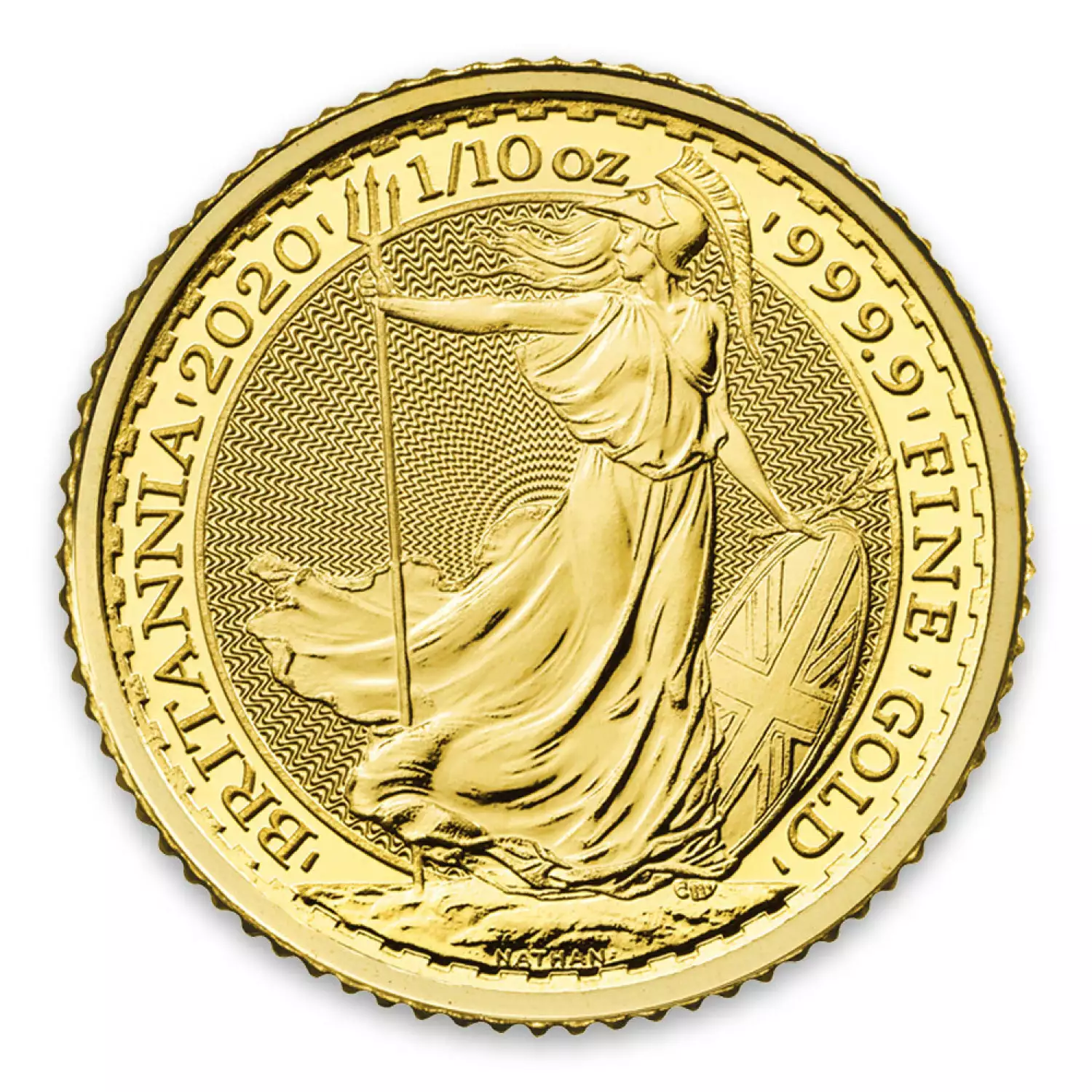 The British Gold Britannia continues to provide beauty and reliability. The 2020 1/10oz British Gold Britannia is one of the most popular investment coins in the world. Each 2020 1/10oz British Gold Britannia contains 0.1 troy ounce of .9999 fine gold. The reverse, designed by Philip Nathan has never changed since the first Britannia bullion coin in 1987. The Britannia has been a symbol through out the history and it’s first appeareance on the Roman coins is dating back over 2000 years ago.