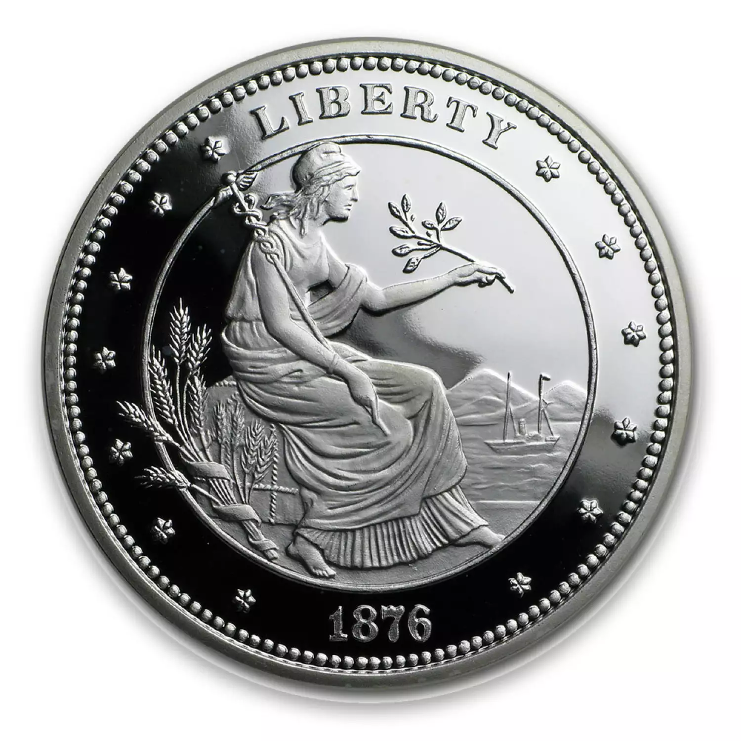 The 1.5oz Union George T. Morgan Silver Round is a commemorative coin which has been designed after the unreleased 1876 $100 Gold Union coin.