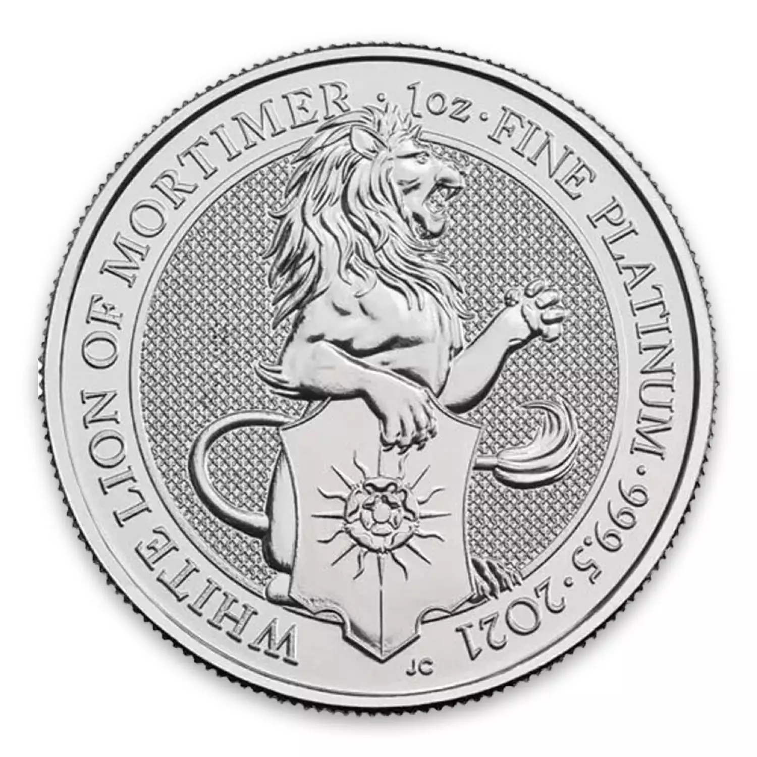 The 2021 1oz Britain Queen's Beasts: The White Lion of Mortimer is the eight release in an exciting 10 coin series. The Britain Queen's Beasts celebrate the British Monarch and the centuries of fascinating heraldry. The reverse, designed by Jody Clark, depicts a lion holding a shield with a rose on it, the symbol of York, along with the sun rays which symbolised good luck in the battles. This platinum coin contains 1 oz of 9995 fine Platinum.