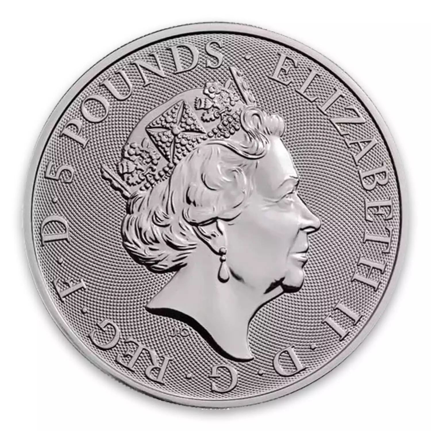 The Britain Queen's Beasts celebrate the British Monarch and the centuries of fascinating heraldry. This strikingly beautiful silver coin contains 2 oz of .9999 fine silver. The 2020 2oz Gold Britain Queen's Beast: The White Horse has a limited mintage and it's the eighth coin from this collection. The coin is designed by Jody Clark and while the observe depicts her Majesty, Queen Elizabeth II, the reverse is facing the White Horse of Hanover with the Royal Arms in front of it.