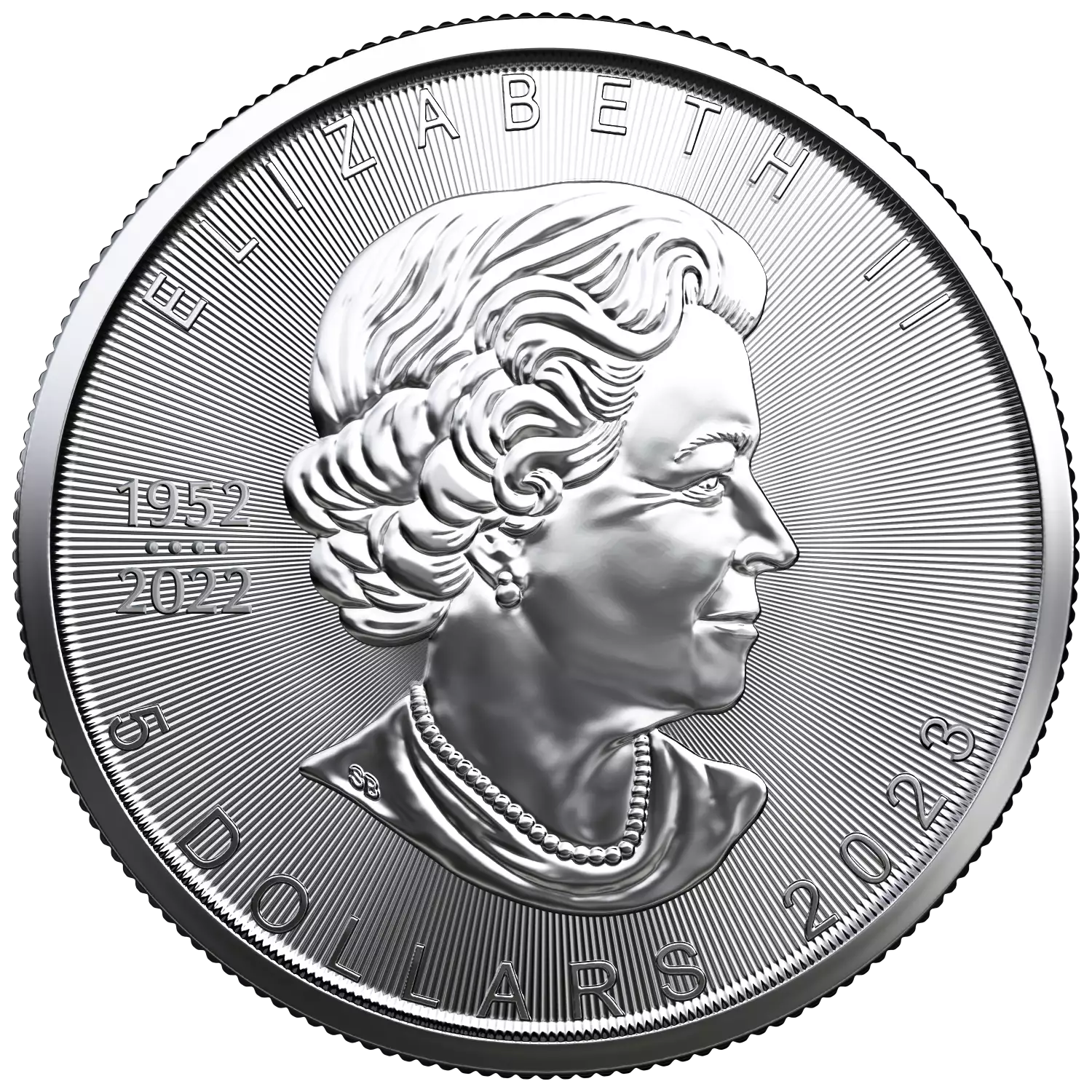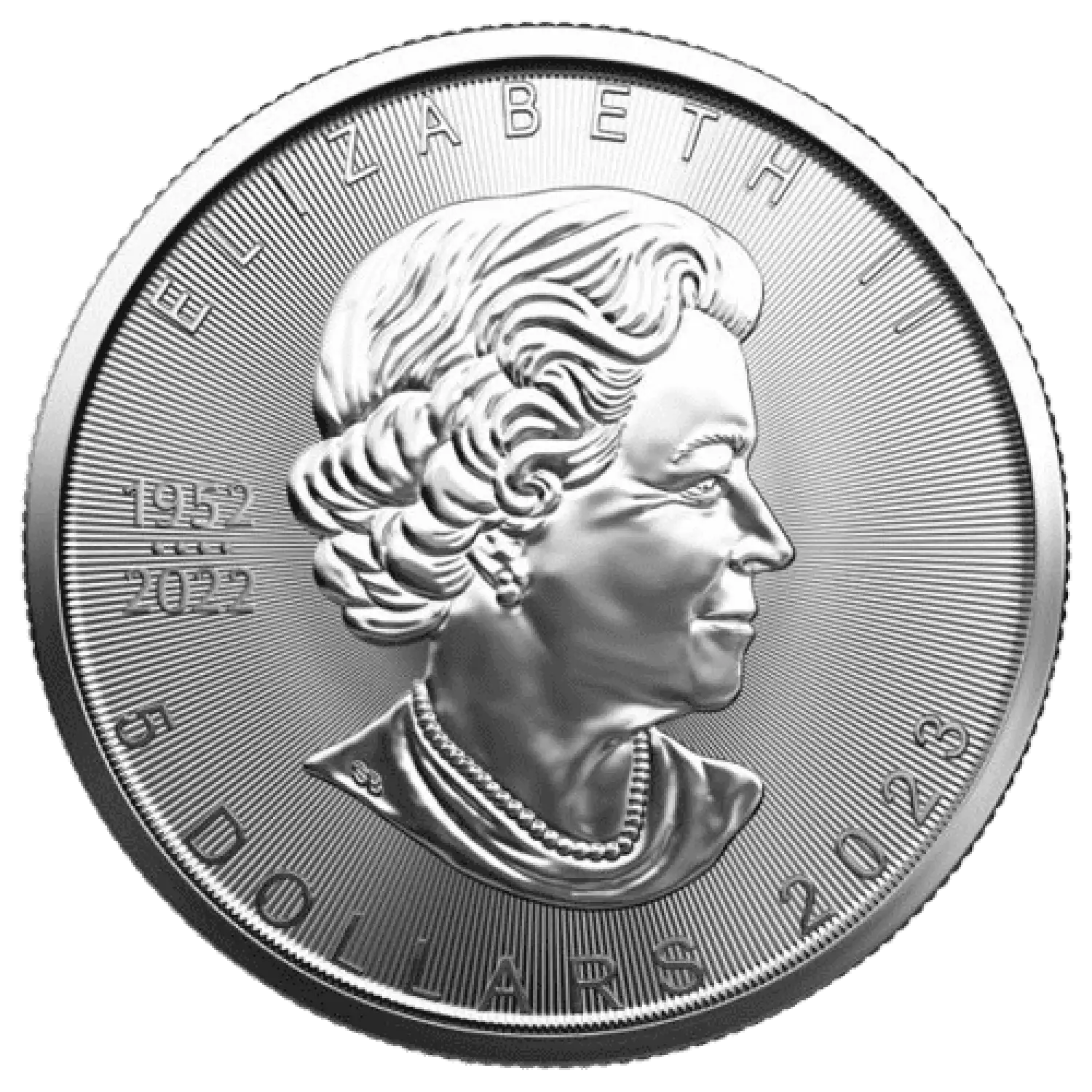 The 2023 1 oz Canadian Silver Maple Leaf is one of the most popular silver coins in the world. These beautiful silver coins are backed by the Canadian government and contain a silver purity of .9999. The obverse of the coin features the likeness of Queen Elizabeth II and the reverse displays one of the Canada's most popular symbols, the maple leaf and weight and purity of the Silver coin. Silver Maple Leaf coins now bear a laser inscribed micro Maple Leaf with the last two digits of the year inside that laser inscription. This is called "bullion DNA" by the Canadian Mint as each coin's laser inscription as t micro level is unique adding to the difficulty in counterfeiting Canadian silver bullion coins. Silver bars and silver coins may tend to tarnish over time depending upon the environment they are stored.