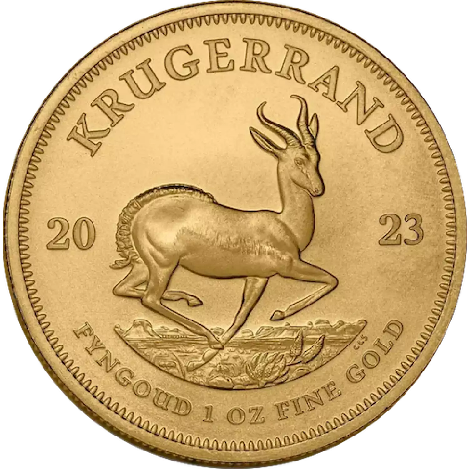 The Gold Krugerrand coin has gained extreme popularity since first incepted in 1967. Each 2023 1 oz South African Gold Krugerrand is composed of 1 troy ounce of .9167 fine gold. The obverse of the 2023 1oz South African Gold Krugerrand features the South African Republic’s first president, Paul Kruger. The reverse of the gold coin depicts South Africa’s symbol, the Springbok Gazelle.This gold coin has an iconic design desired by many gold investors.
