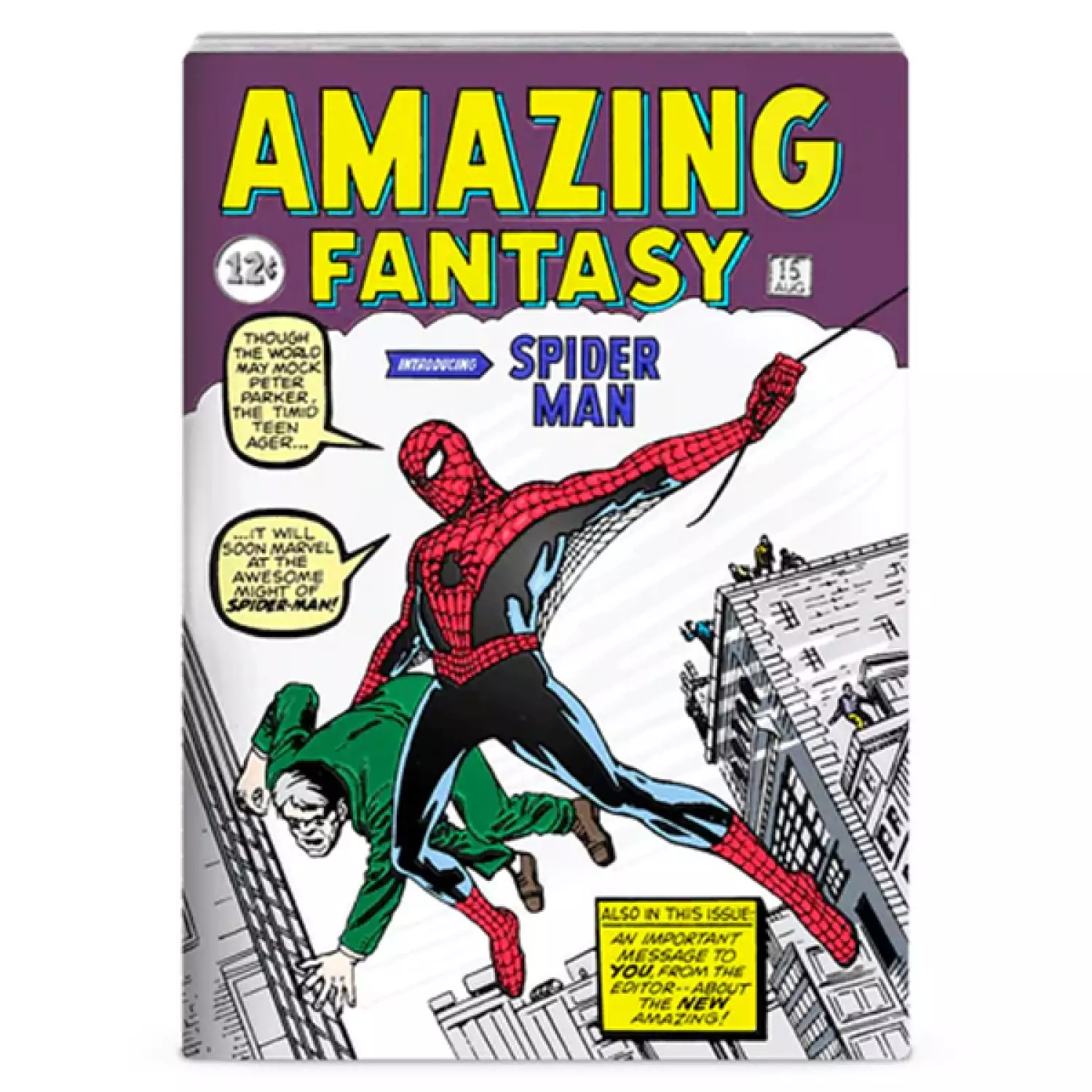 Our first Marvel coin is here! Made of 1oz pure silver, this COMIX™ Coin displays a coloured image of the Amazing Fantasy #15 comic cover from 1962 – the first appearance of Spider-Man™! Some parts have been left engraved to let the silver glisten.