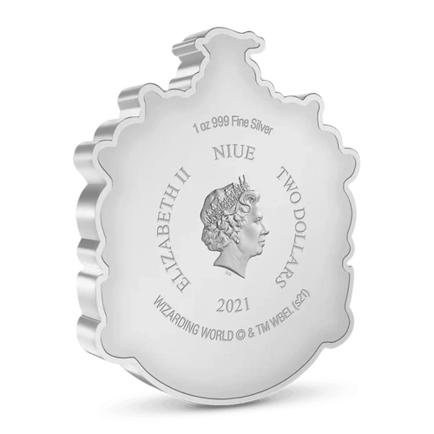 If your Hogwarts™ House is Hufflepuff then this 1oz pure silver coin is for you! Part of the Hogwarts™ House Crest Collection, it shows the house’s animal mascot, a badger, against a chequered black and yellow shield – representing the house colours. A scroll at the bottom is engraved with the name ‘Hufflepuff’ in black. The silver surround has been engraved and completed with a mirrored and frosted finish for contrast.