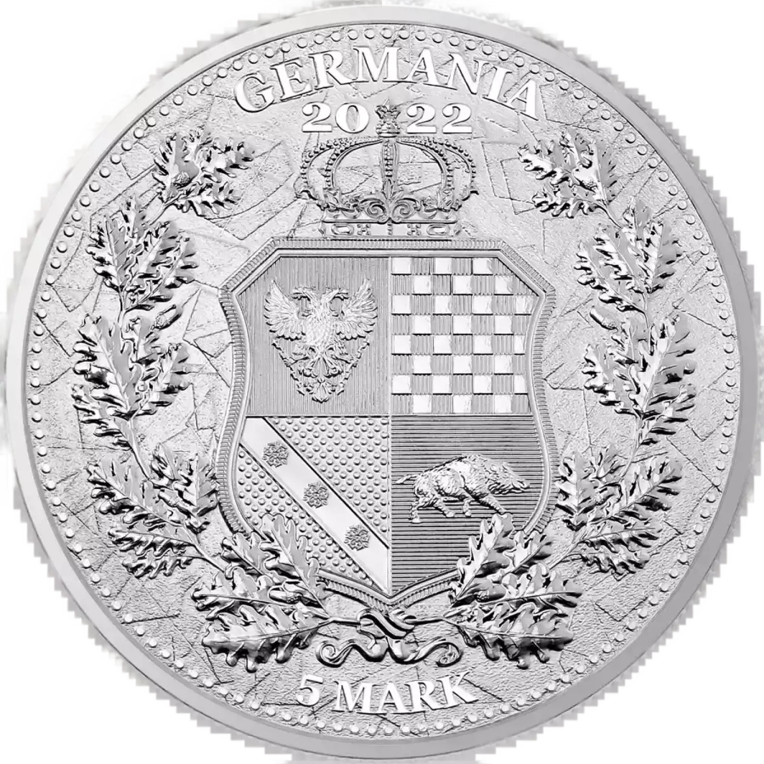 According to the previous series, the image on the reverse is the coat of arms representing moral principles and noble values. Germania was a historical land and has never been an official country, that’s why we’ve decided to create our own interpretation of its coat of arms. Its symbols and design are a Creative tion of our imagination, however it has been created in accordance with applicable heraldry rules.