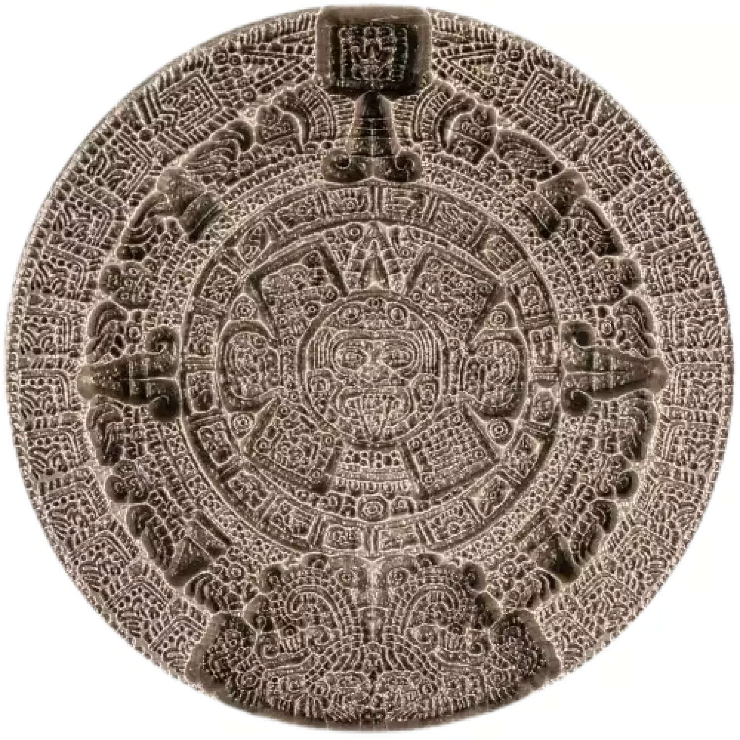 This historic relic was originally built by the Aztec people to trace their complex cosmology. With the level of intricate detail present on this silver replica, the fact that multiples stack perfectly on top of one another is all the more impressive.