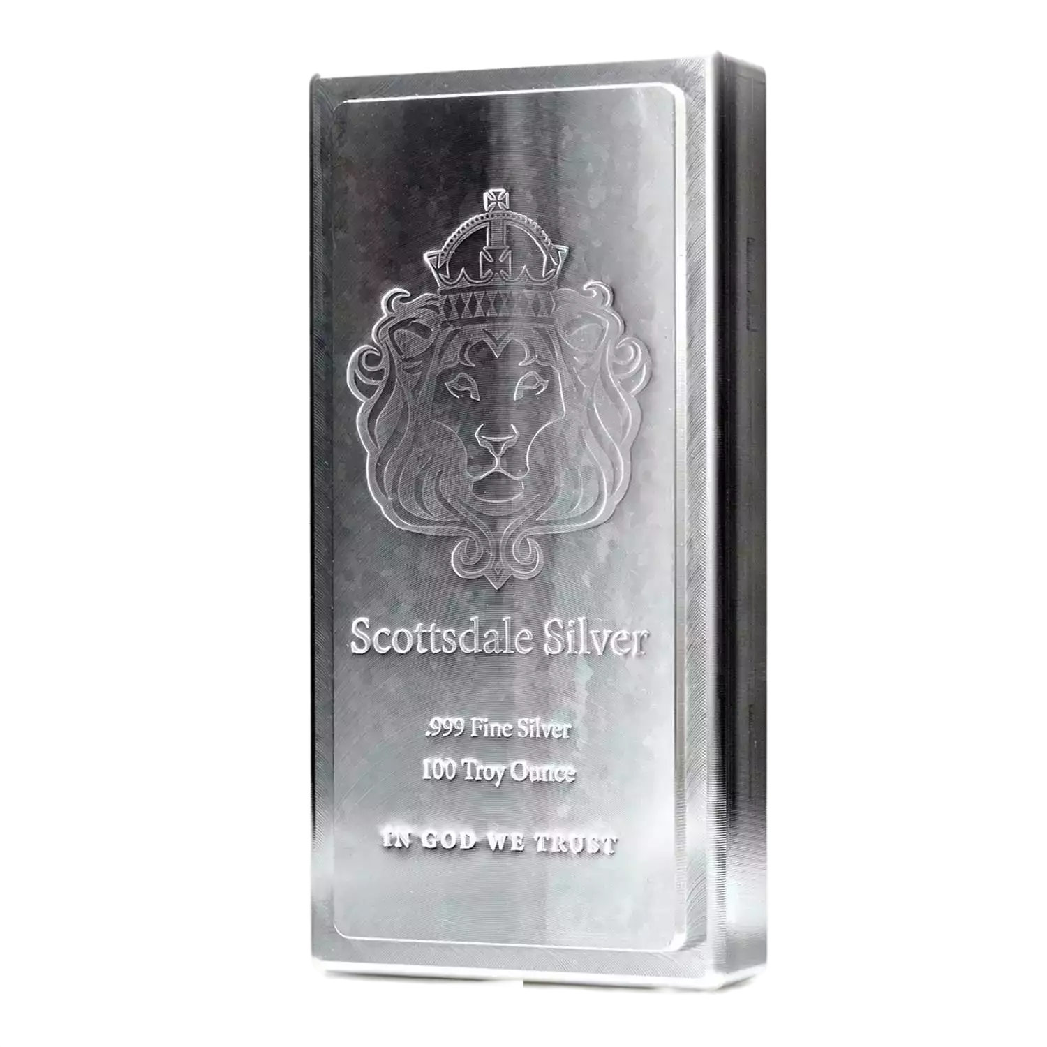This is IT. The ultimate statement of wealth and power. Weighing in at 100 Troy ounces, the King Stacker® is for you silver bugs who use the 10oz stackers as paperweights and skipping stones. Each King Stacker® silver bar has a unique serial number and we are ISO 9000-2015 certified. The Scottsdale Silver King Stacker® features the same interlocking design as its smaller counterparts. To top it off, they also qualify to be placed in a Precious Metals IRA. BRAND NEW .999 Fine Silver Bullion MADE IN USA by US Citizens. Vault Ready.