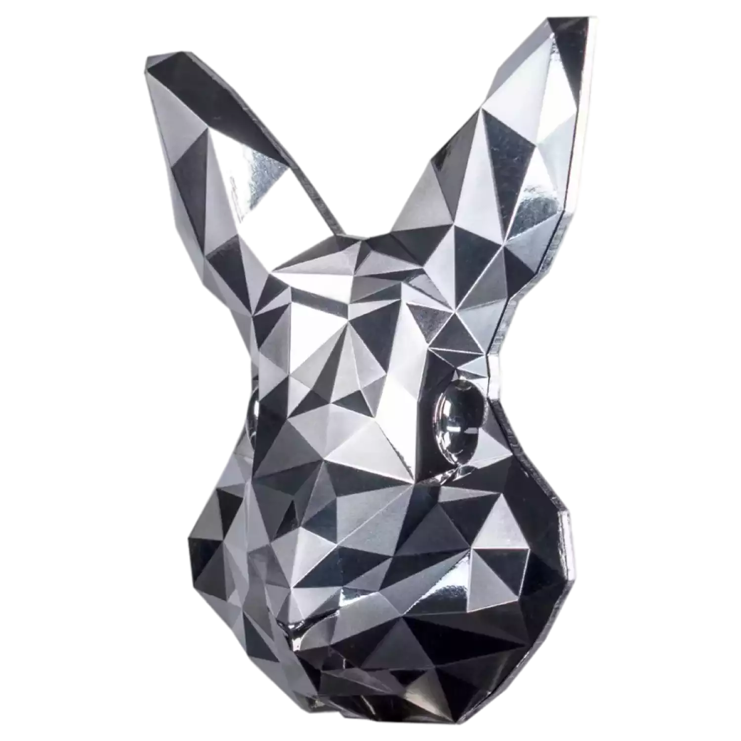 The rabbit is the fourth animal symbol in the twelve year cycle of the ancient Chinese zodiac. Those born under the influence of the rabbit are generally known to be gentle, quiet and elegant, and are often recognized for their vigilance, quick thinking and sense of responsibility. The stackable medal features an intriguing high relief lowpoly design. Lowpoly refers to a mesh of polygons (usually triangular), which is crafted using a relatively low number of shapes to form a stylized three dimensional graphic.