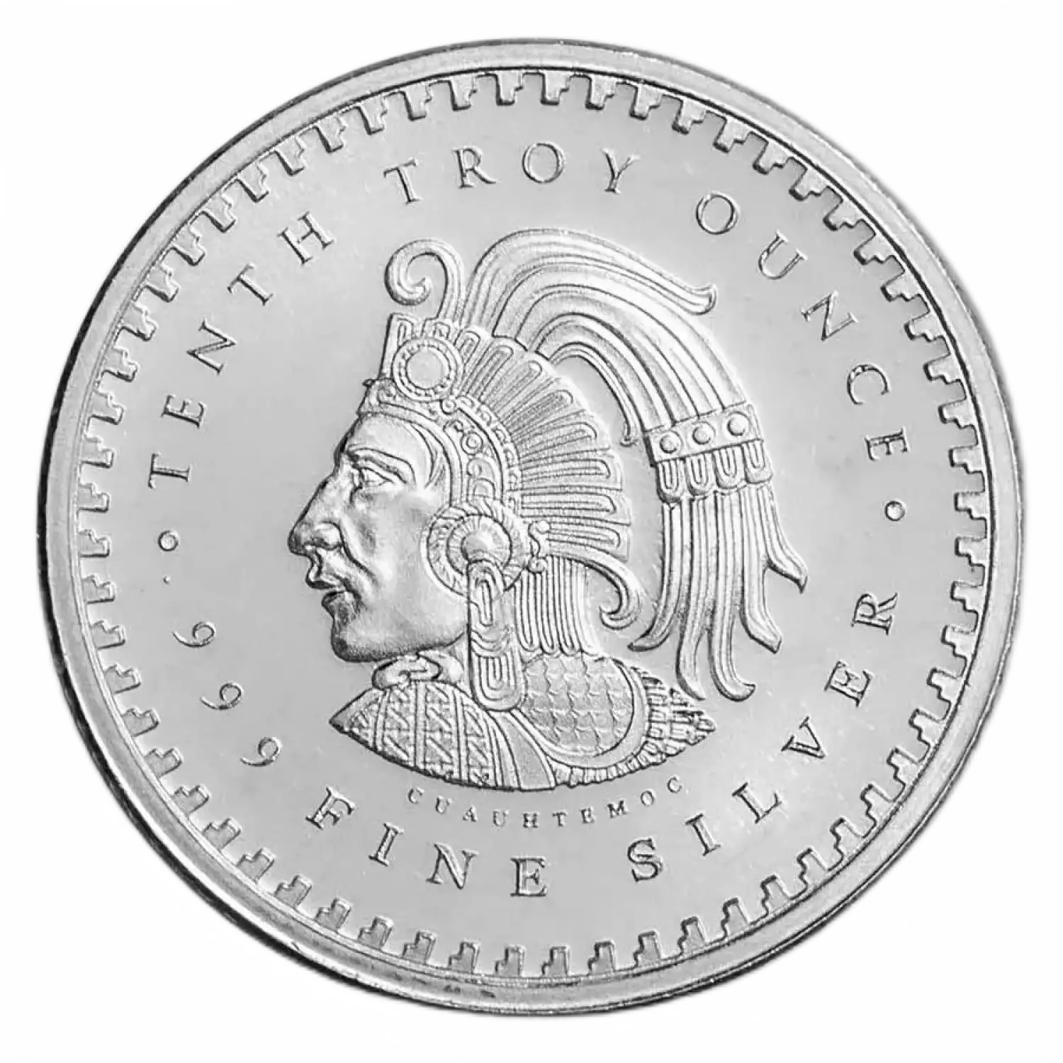 This stunning 1/10 oz Silver round features a beautiful design of the Aztec calendar sun stone in spectacular detail.