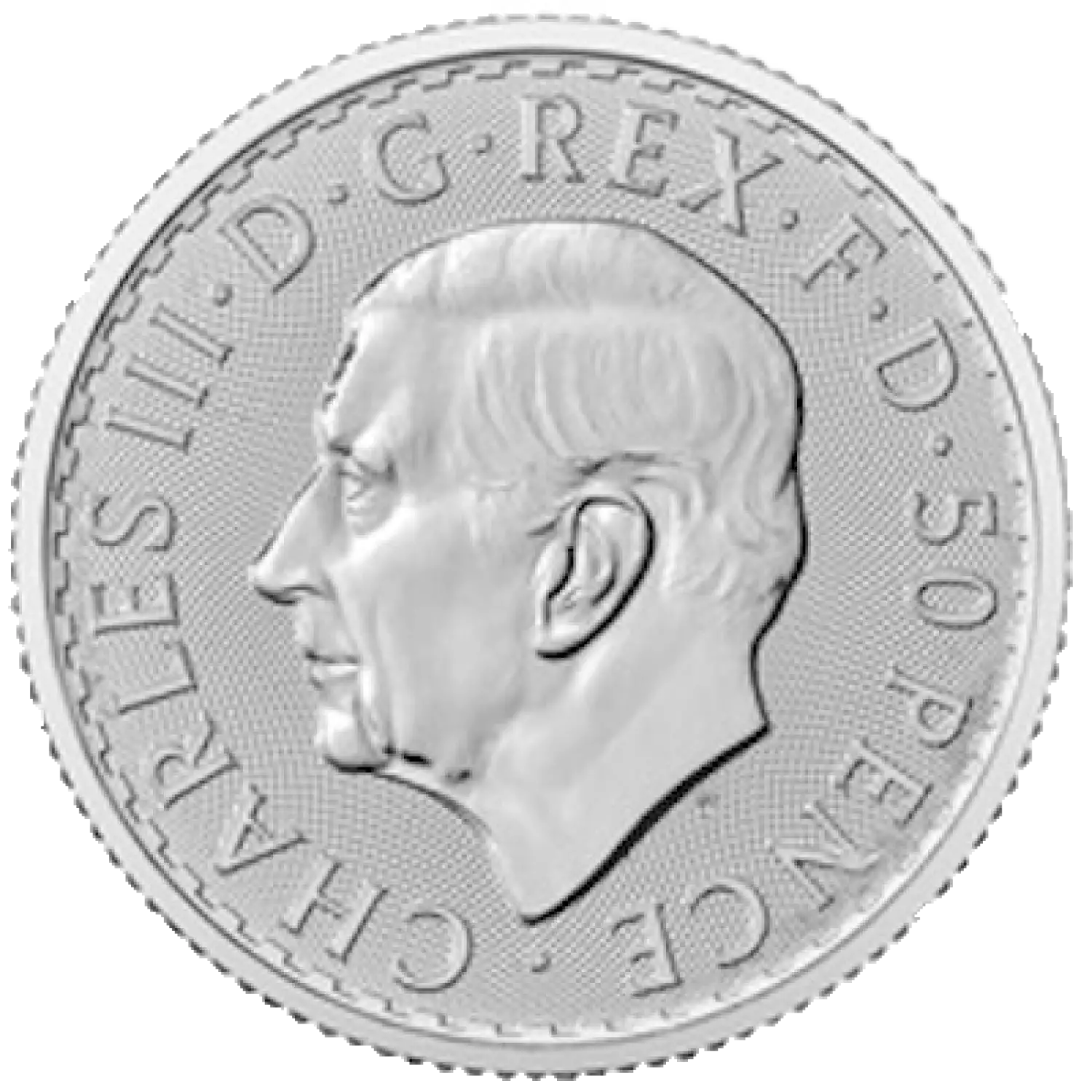 On the reverse side of the 2024 quarter-ounce Silver Britannia, you'll find the timeless depiction of Lady Britannia, the Roman mythological goddess and embodiment of Britain, holding a shield and trident. On the obverse side, you'll discover the portrait of His Majesty King Charles III, skillfully crafted by Martin Jennings. This 2024 Silver Britannia coin holds legal tender status in the UK, with a face value of 50 pence.