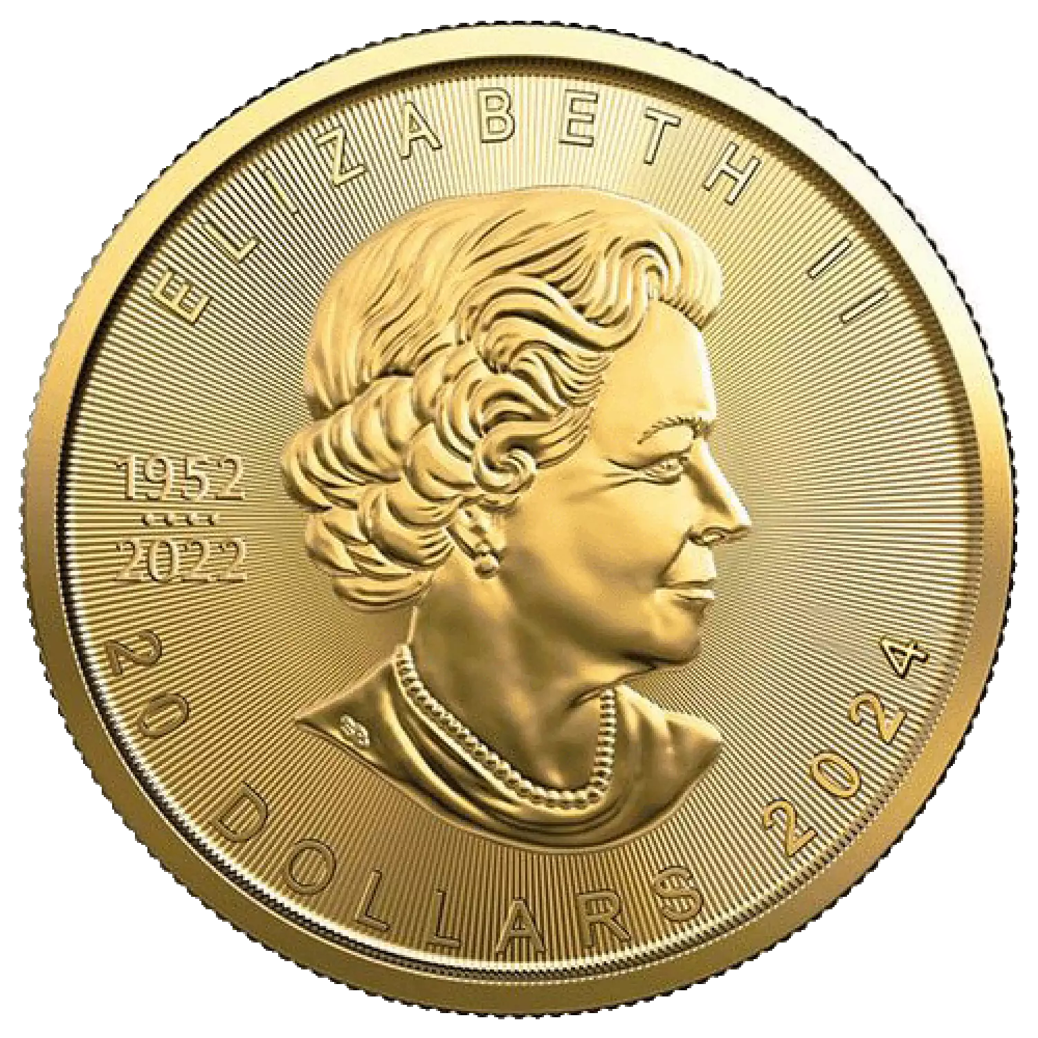 The 2024 1/2 oz Canadian Gold Maple Leaf is one of the most popular gold coins in the world. These beautiful gold coins are backed by the Canadian government and contain a gold purity of .9999.The obverse features the effigy of Queen Elizabeth II by Susanna Blunt The obverse also bears a special marking that includes four pearls symbolizing the four effigies that have graced Canadian coins and the double date of her reign. Three unique features for cutting edge security, including precise radial lines, a micro engraved leaf and Bullion DNA TM Anti Counterfeiting Technology, exclusive to the Royal Canadian Mint. Bullion DNA TM technology facilitates the authentication of Gold Maple Leaf coins dated 2014 and later. An attractive acquisition for both first time precious metal buyers and long term investors. Precision cut radial lines create a unique light diffracting pattern specific to this coin