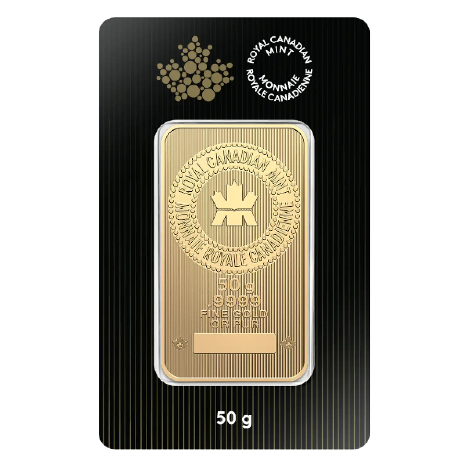 The 50g Royal Canadian Mint (RCM) Gold Bar is a hallmark of quality and prestige in the world of precious metals. Known for its purity and craftsmanship, this gold bar is not just an investment; it's a tangible asset that can serve as a valuable addition to your portfolio. Each bar is meticulously produced by the Royal Canadian Mint, renowned for its strict quality standards and advanced technology in bullion production.