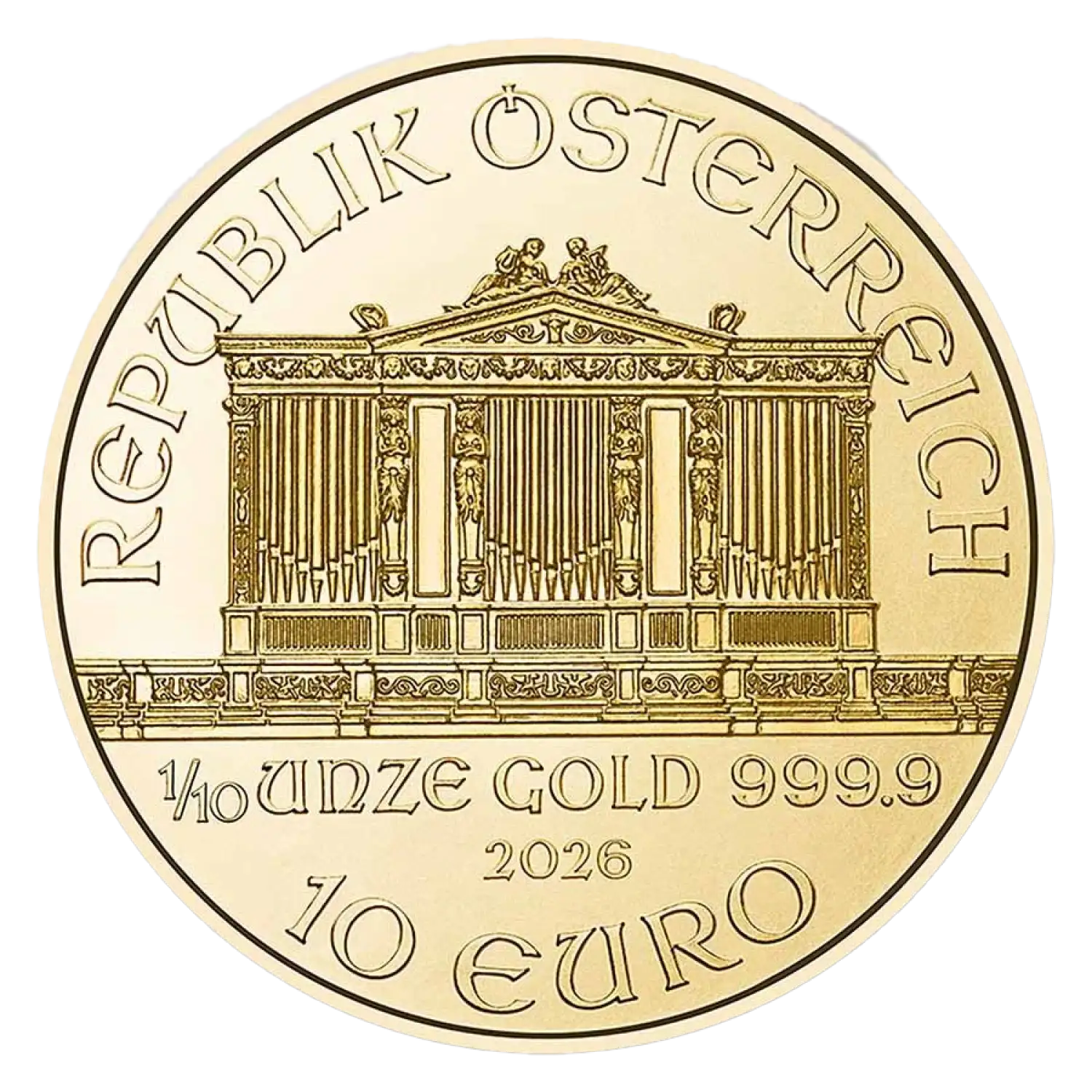 The 2026 1/10 oz Austrian Gold Philharmonic coin is a remarkable addition to any gold collection, representing not only a precious investment but also an exquisite piece of art. Known for its quality and craftsmanship, the Gold Philharmonic is produced by the Austrian Mint and continues to be one of the most sought-after bullion coins in the world. This coin celebrates the rich musical heritage of Austria, featuring iconic designs that resonate with both numismatists and music lovers alike.
