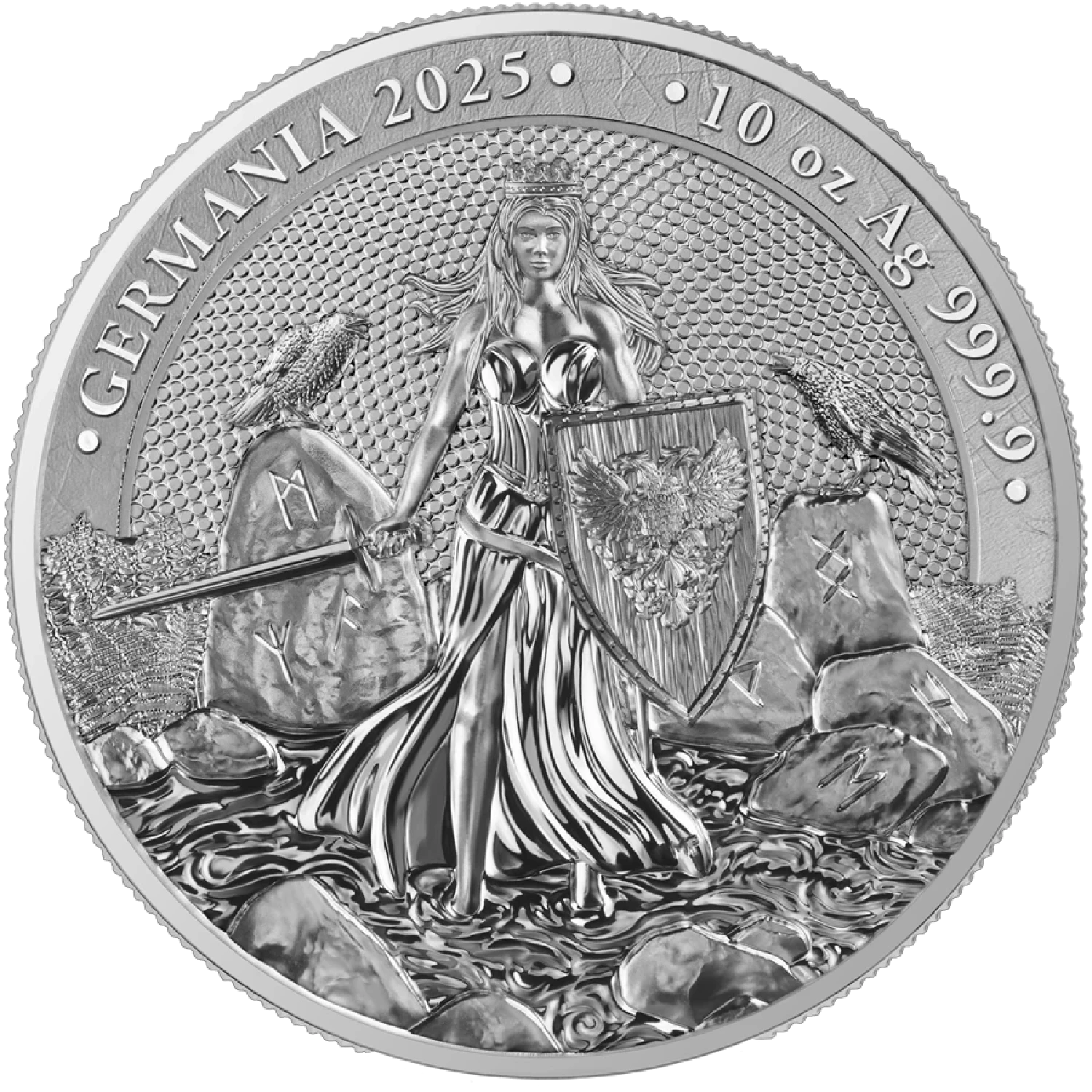 The 2025 10 oz Germania Silver Coin is a stunning addition to any precious metals collection, showcasing the artistic excellence and rich heritage of the Germania Mint. Released as part of their ongoing commitment to quality and craftsmanship, this coin is not only a beautiful investment but also a unique piece of art that pays homage to German mythology and culture.