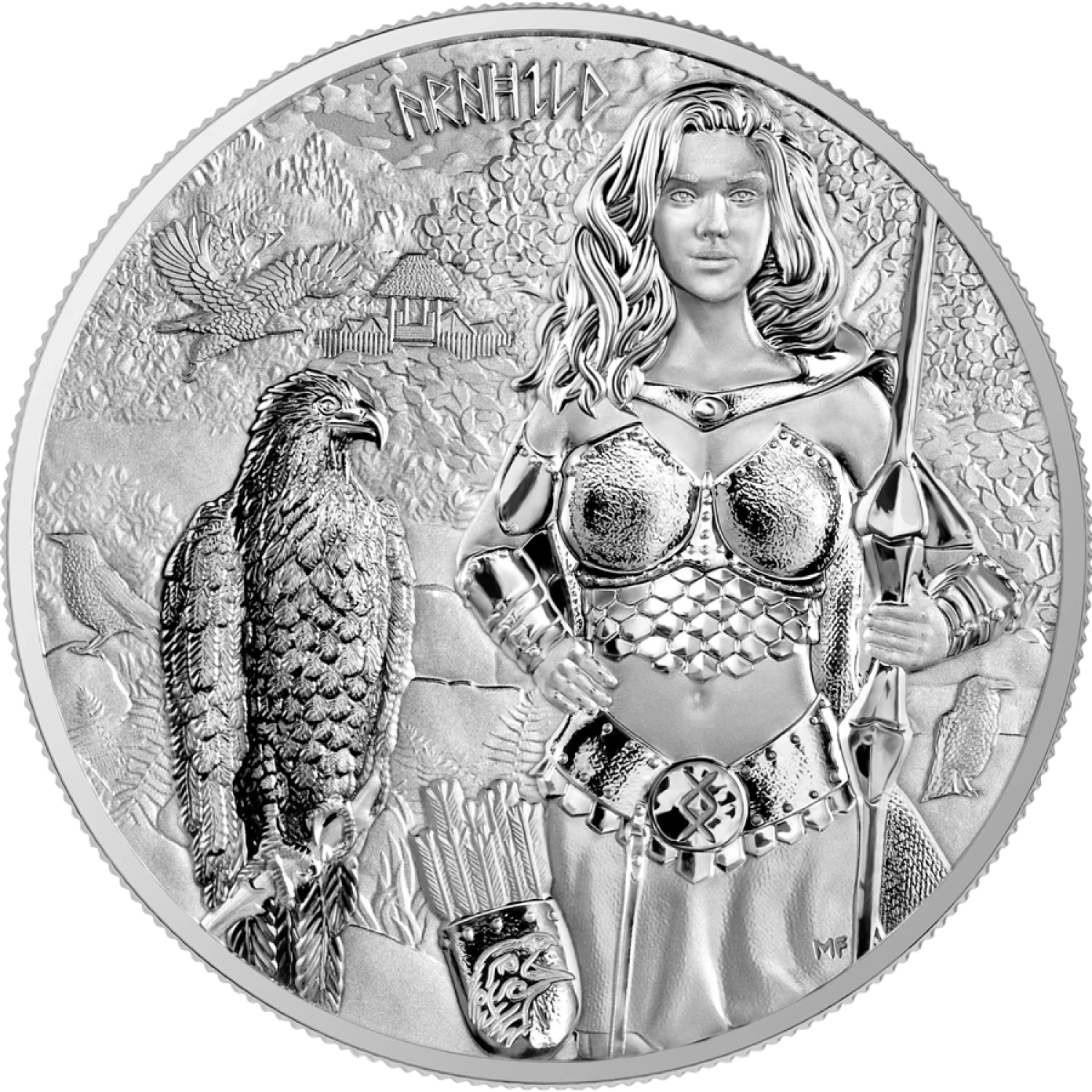 The 2025 Arnhild Silver Coin is not just a beautiful piece of art; it is also a sound investment choice for those looking to diversify their portfolio with precious metals. This coin holds a special place in both the bullion market and in the hearts of those who appreciate the rich tapestry of Norse history and legend. The intricate design showcases Arnhild with her wings majestically spread, symbolizing strength and bravery, while the reverse side features the emblematic design and purity mark, underlining its authenticity and precious metal content.