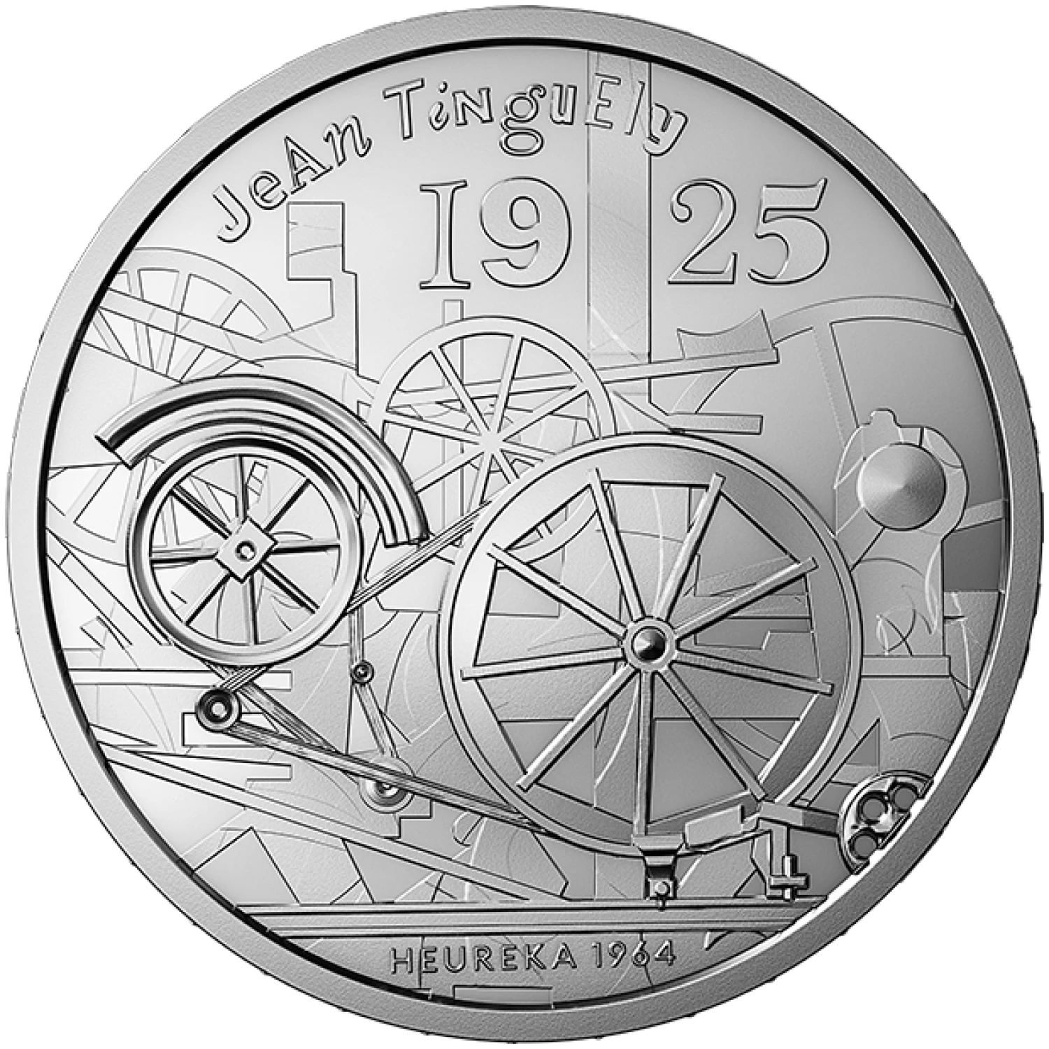 This stunning coin features a detailed design inspired by Tinguely's renowned masterpieces, showcasing his dedication to movement and mechanical art. The coin’s artwork is an impressive representation of Tinguely’s artistic vision, making it an ideal centerpiece for both collectors and investors seeking a unique piece of silver bullion.