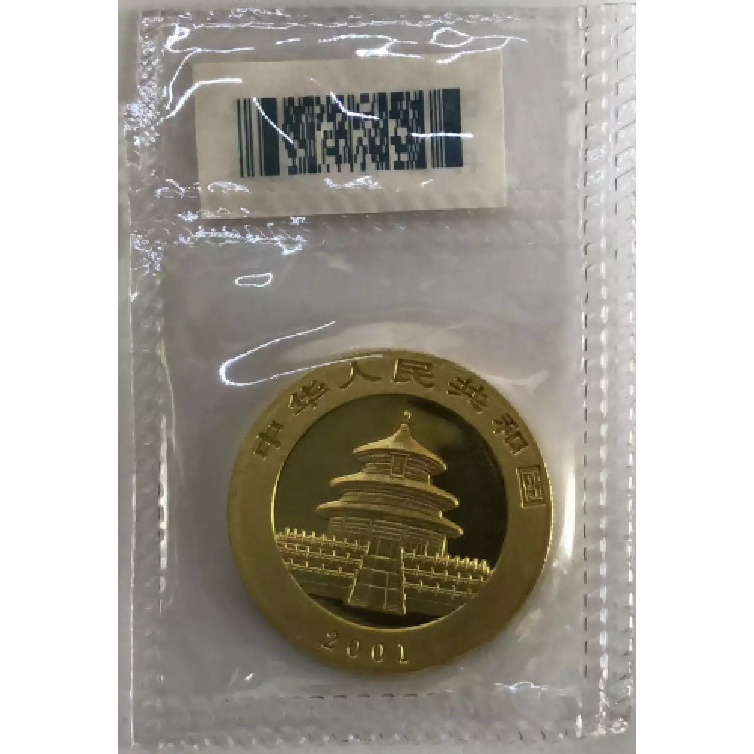 The 2001 Chinese Gold Panda coin is minted as .999 fine gold, 24 karat.