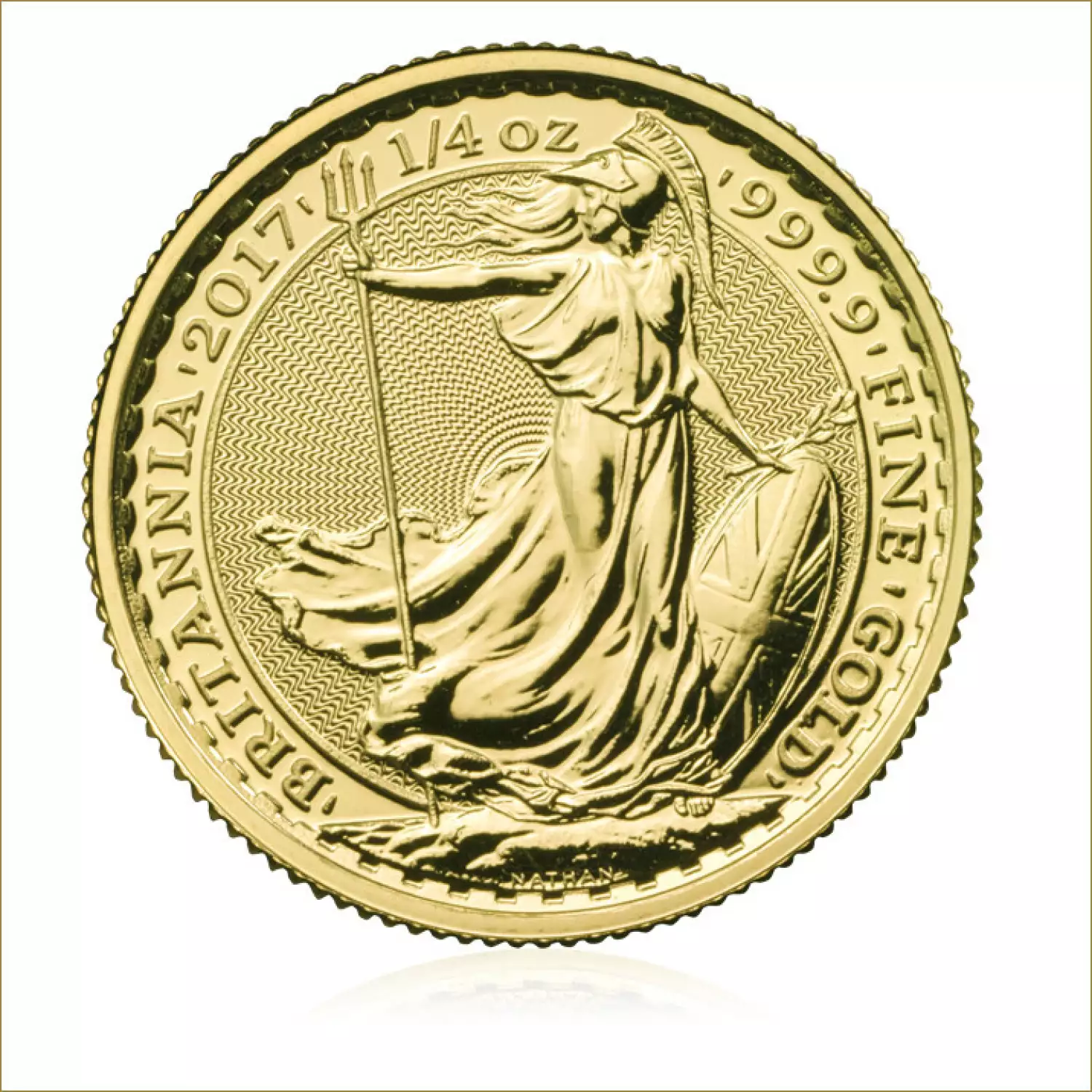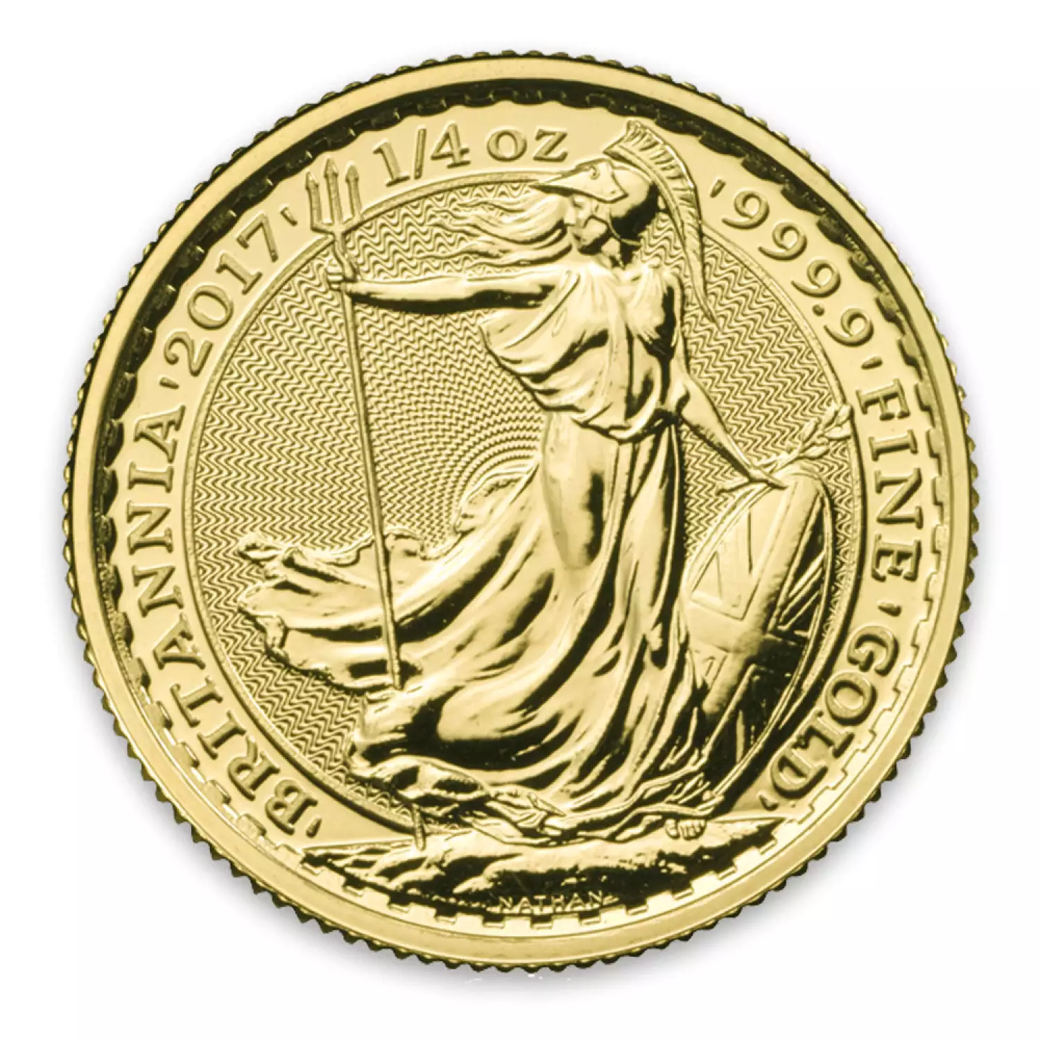 The ¼ oz 2017 British Gold Britannia is one of the most popular investment coins in the world. This stunning gold coin contains 0.25 troy ounce of .9999 fine gold.