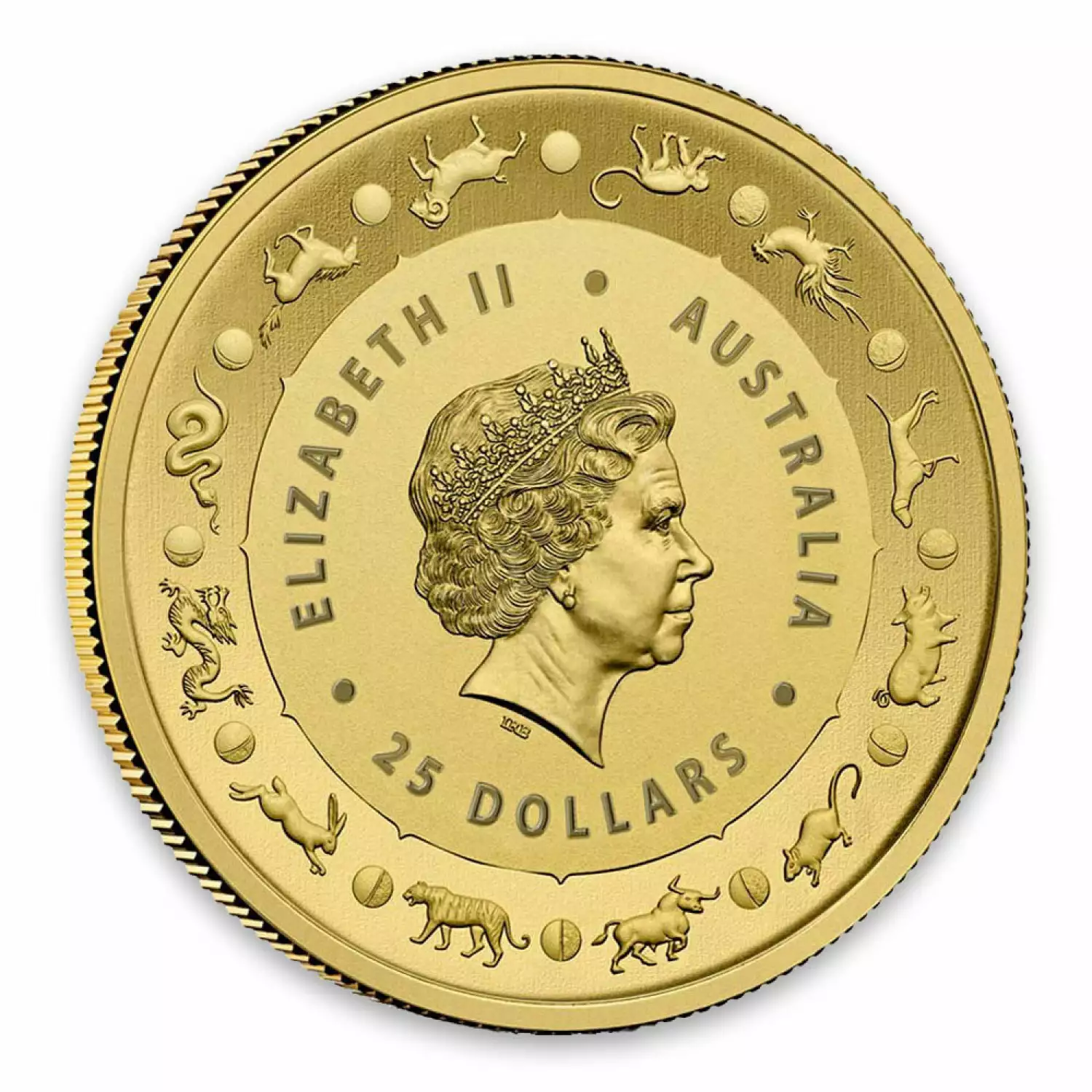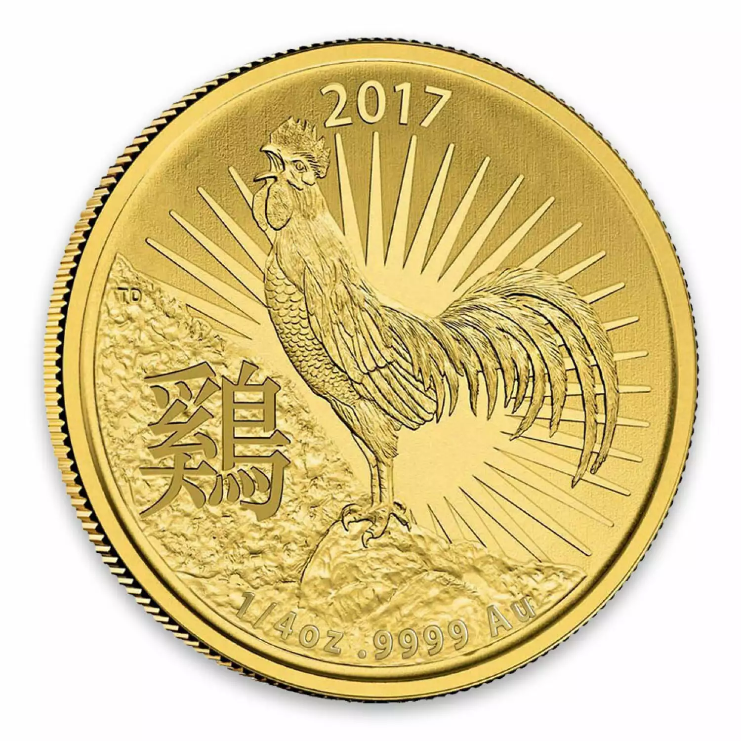 The 2017 Royal Australian Mint 1/4 oz Year of the Rooster is composed of 0.25 oz of .9999 actual gold.